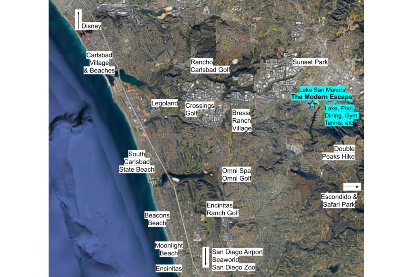 **Book here direct and save on fees. Or book through Airbnb: airbnb.com/h/lakesanmarcos 🏠The Property 3 bed, 2 bath private home with designer remodeled kitchen, bath and open floor plan. Outfitted with luxury beds, fully stocked kitchen, work desk, TVs throughout and outside patio and grill overlooking the mountains. Includes coffee, dishwasher, stove, microwave, washer/dryer, heat, a/c, wifi, beach chairs, and more. The master bedroom has a king bed, 2nd bedroom has a queen bed, and 3rd bedroom/den has a twin trundle bed with another pull out twin bed below. Nicest modern rental in Lake San Marcos! 🎾Amenities (Less than 10 min walk, 2 min drive) Enjoy the great amenities of Lake San Marcos - just a short walk from the property. As our guest you will have access passes to the lake, tennis, pickleball, heated pool and gym. Also walkable to two highly-rated restaurants and Lakehouse Resort which holds many events including weddings. Spa at award winning Omni La Costa 10 min drive away. Boats, paddleboards and kayaks are available for rent at the lakehouse. Note: swimming in the lake is currently prohibited by the Lake San Marcos association. ⛳Golf The Links, a public 18 hole championship golf course, is walkable from the property. There are also three other 4+ star golf courses within 15 minutes of Lake San Marcos making this a perfect destination for golfers. 🧒🏻Kids Property includes pack-and-play, booster seat and bed guard for kiddos. Centrally located, the property is close to many kid-friendly attractions. Legoland 15 min, Safari Park 20 min, Zoo & Seaworld 40 min, Disneyland 75 min. 🌄Hikes Centrally located 15 minutes from three 4.7+ star hikes - Double Peak, Rancho La Costa Reserve and Elfin Forest. See Mexico from Double Peak! (this is the mountain you see out the windows). 🌴Near By The Links Golf & Lake Amenities: 3 min Ocean/Beach: 15 min Carlsbad Village: 20 min Double Peak Epic Hike: 12 min Legoland: 15 min SD Zoo Safari Park: 20 min SD SeaWorld: 40 min SD Airport: 40 min Disneyland: 75 min